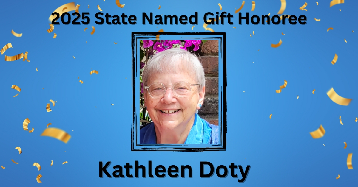 Kathleen Doty was presented with the 2025 State Named Gift Award at the virtual Annual Event on April 26, 2025.