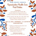 On Thursday, January 15, 2026, from 6 – 7:30 pm, on Zoom, the Turlock/Modesto Branch will host a panel discussion on Reproductive Health Post Dobbs. The esteemed panel will discuss the effect on medical education and residency programs, what is changing in California, and what is standard clinical care independent of politics. You do not want to miss it. Registration is limited to the first 100 registrants. Register now.